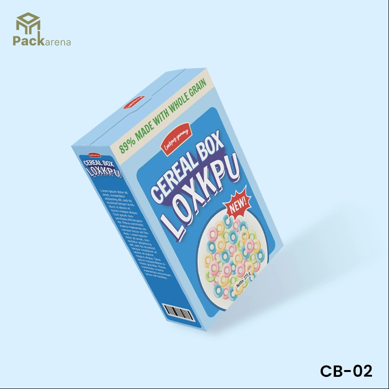 Each box can be paired with a food-safe liner or pouch to keep cereal fresh, while the exterior provides ample space for branding, product details, and colorful designs that catch the eye on busy store shelves.